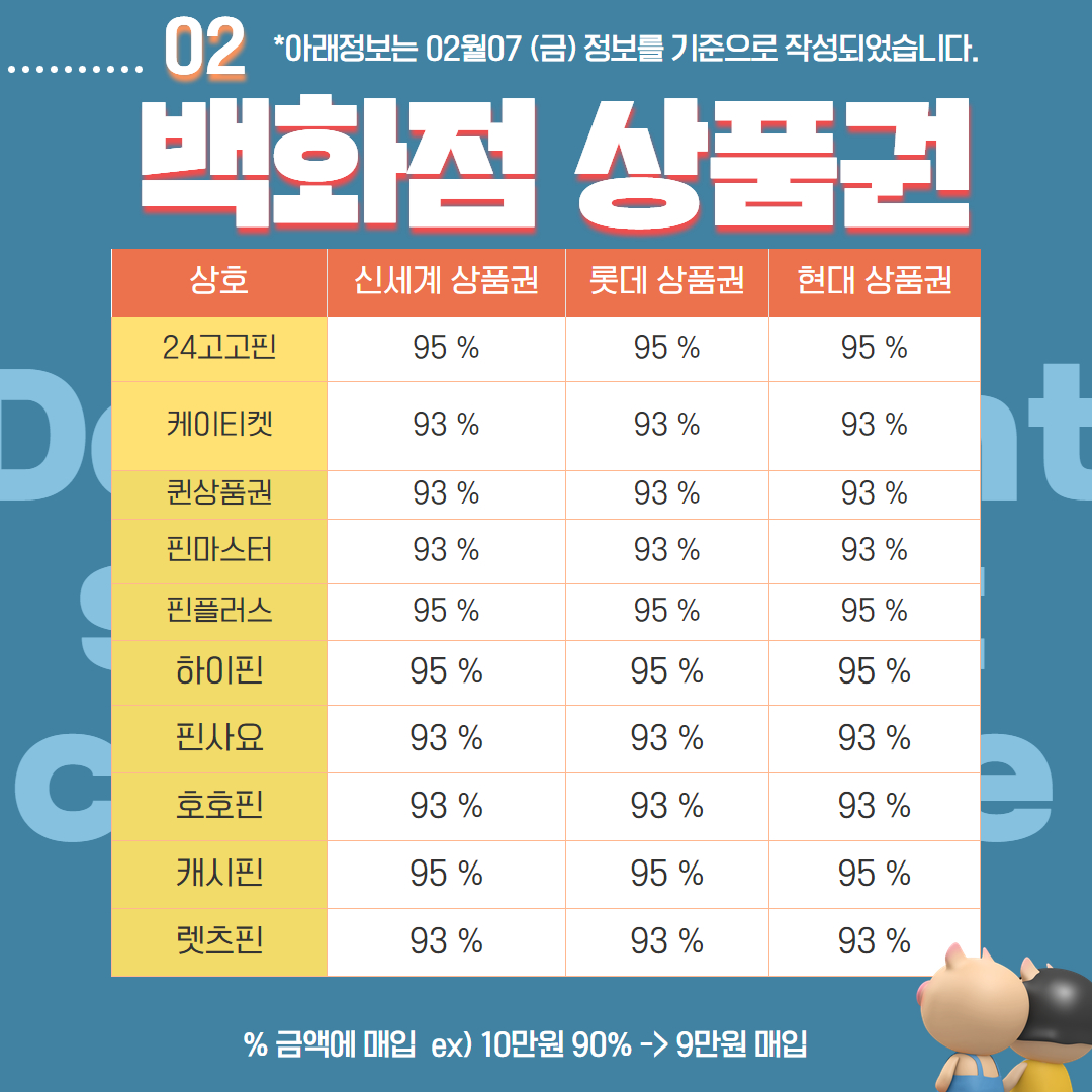 📌 백화점 상품권 매입 시세 (2024년 2월 7일 기준)